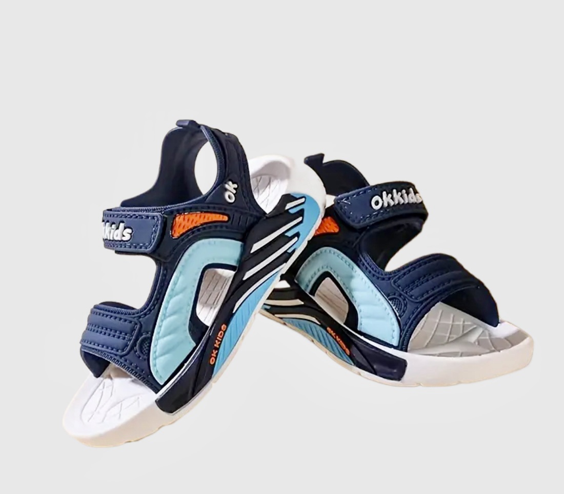 Jungen Atmungsaktive Dicke Sohle Slip-On Sandalen mit Verschluss – Weiche PVC Rutschfeste Sohle, Buchstaben-Druckdesign für Ganzjahres Freizeitstrandkleidung