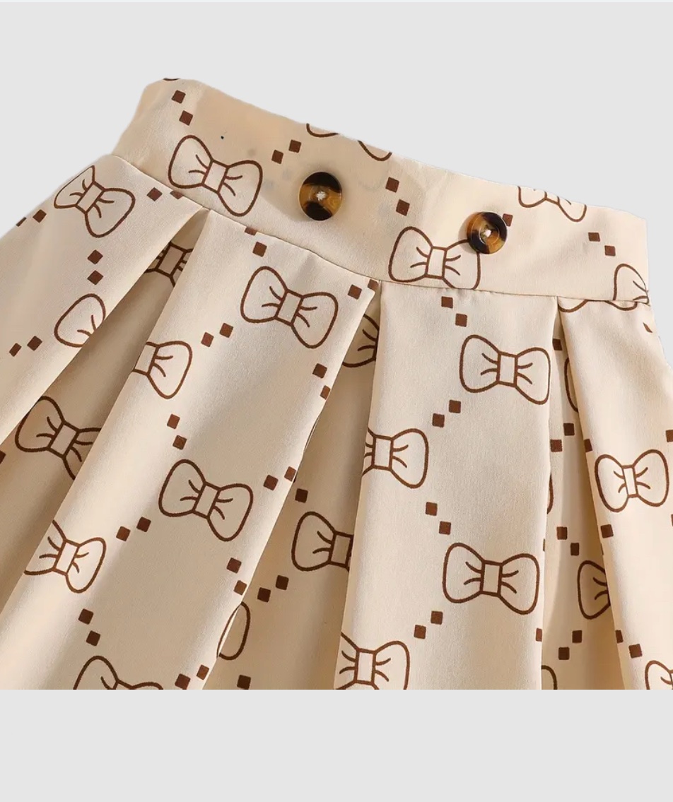 Mädchen-Mode-Set mit pink-weißem Karomuster-Rock und Schleifendetail, Rundhalsausschnitt und Knopfverschluss – Ein schickes Sommeroutfit